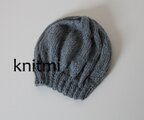 オールシーズン【北欧リネン100%】 ゆるっと涼しいニットベレー帽 しめつけなし★麻 グレー