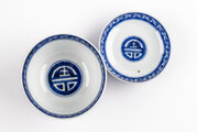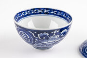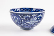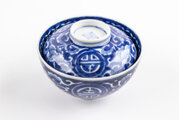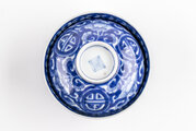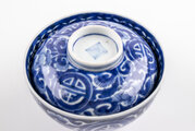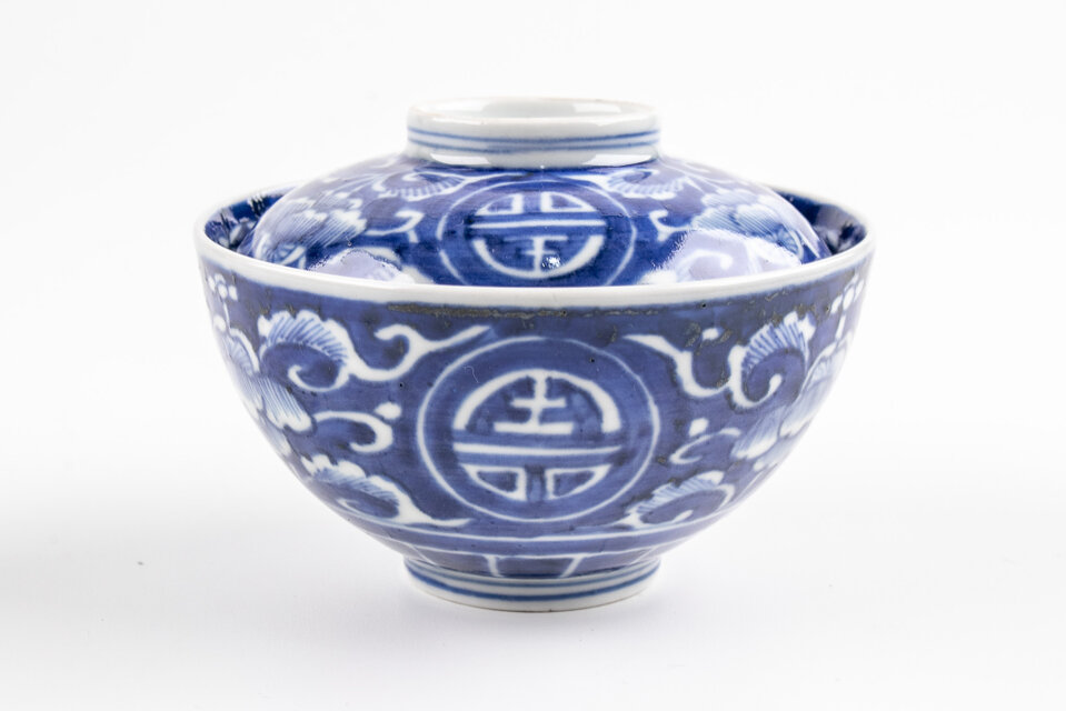 古伊万里 染付 牡丹寿字文 蓋茶碗 江戸後期