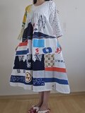 白い手ぬぐいをパッチワークしてワンピースを作りました。