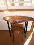 テーブルの木は、自然木の一枚ひのきを使用しており自然の形状を活かし レトロ調に仕上げております。