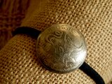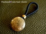 タイ王国の5バーツコインをヘアゴムと芯合わせし、コンチョ型に加工した作品です。