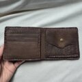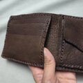 肌触りのいい鹿革を使用し、手縫いによるハンドメイドで自然の風合いを活かし制作した二つ折り財布です。