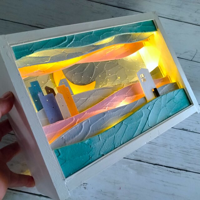 作品に灯りがともります。