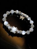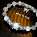 ホワイト シルバー ムーンストーン アンティーク 蝶々 天然石ブレスレット