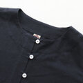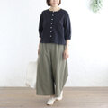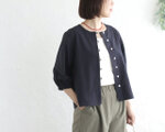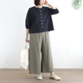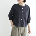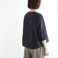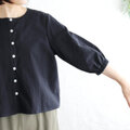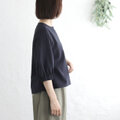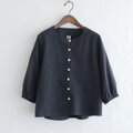季節をつなぐ一枚◎ 東炊きコットンリネン 五分袖ループボタンブラウス(ネイビー)TP22