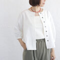 ふわりと空気をまとったようなやさしい着心地のコットンリネンで、大人のためのシンプルな五分袖ブラウスを仕立てました。