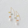 ファンシーカラーサファイアとアコヤ真珠のチェーンピアス|K10ゴールド|上品×カラフルな輝き