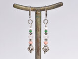 アンティークグーズベリーとピンクマサイ、ヴェネチアビーズ、カレンシルバーを繋いだピアスです。