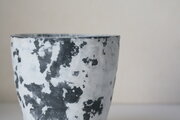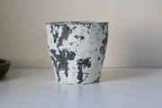 白壁がはがれて風化したみたいなコップ型のうつわです。