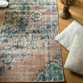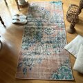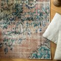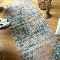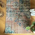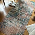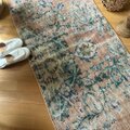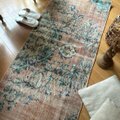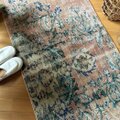 68×154 くすみピンクベージュ×ターコイズブルー トルコヴィンテージラグ