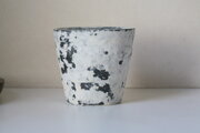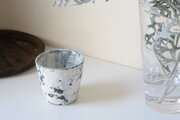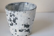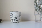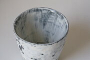 白壁がはがれて風化したみたいなコップ型のうつわです。