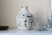 かさついた花入れの質感と花たちの生命力に満ちた瑞々しさのコントラストが一層際立ちます。