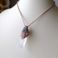 レムリアンシード 水晶ポイント(ブラジル産)・アマゾナイト(ロシア産) マクラメ編みペンダントネックレス 男女兼用可 3485