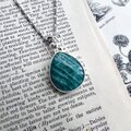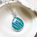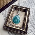 ブルーグリーンをベースに白い縞模様が美しいアマゾナイトのネックレス。