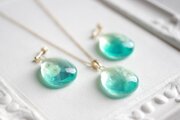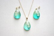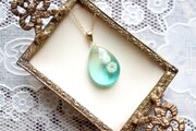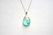 ドロップ型のレジンにお花を二輪咲かせた可憐なペンダントです。