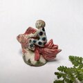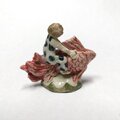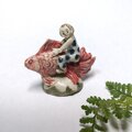 金魚や衣装、土台の一部分に薄く透明釉を施しているので、その部分は少し光沢があります。