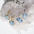 ぽっこりとしたシェイプのアクアマリンが限りないシンプルスタイルで留められて、石と耳と、心が一つに。