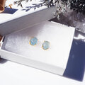 届きました!ブルー〜グリーンの色の綺麗な石で天然石ならではの風合いがとても好みでした。サージカルステンレスのフープピアスにしてもらいましたがつけ心地も軽くとても良いです。この度もありがとうございました!