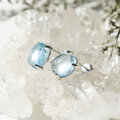 大粒ぽってりアクアマリンのカボションピアス ~碧水(へきすい)