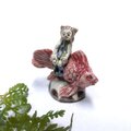 金魚や衣装、土台の一部分に薄く透明釉を施しているので、その部分は少し光沢があります。