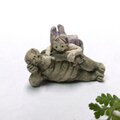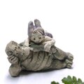 ごろりと寝転んだ縁起物の亀にうさぎ耳のちびっこが寄り添っています。
