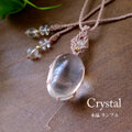 滑らかでコロンと愛らしい形状が印象的なタンブル水晶が引き立つように、明るめのコードでシンプルで丁寧に編み込んで魅力あふれる1点ものマクラメ編みペンダントに仕上げました。