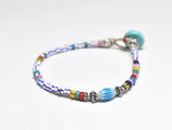 スカイブルーシェブロンビーズと多彩アンティークヴェネチアビーズのブレス(ターコイズ留め金)