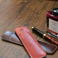 上質なレザーが映える、深みあるワインレッドの万年筆ケースです。