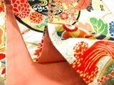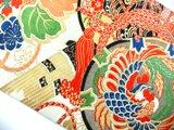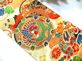 ベージュ地に鳳凰・鼓・小槌・笙や桐などの小花が描かれている典型的な古典文様です。華やかさがある色合いです。