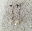 こちらは、あこや本真珠、クレオパトラ珠のラインストーン付きチタン製のピアスでございます。