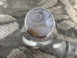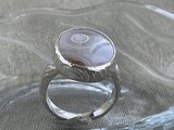 藁のような植物が悠久の時を経てアゲートに残した痕跡、チューブアゲートの模様に合わせて石枠やリングバンドにも波紋を彫った一点ものリングです。