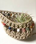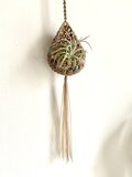 コロンとした小さなしずく型のマクラメハンギングポットです。手のひらサイズなので、小さなエアープランツにちょうど良い大きさです。