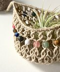 ビーズは小さな丸い天然石。彩豊かな天然石の魅力がマクラメに編み込まれた作品です。