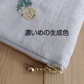 草花刺繍 大きめ20cmのフラットポーチ 内ポケット 亜麻色 344