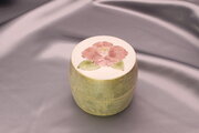 存在感のある赤紫色の椿を和絵具で描いております。安定感のある形になっておりますので、腕時計やアクセサリーなど大切な物をちょっと入れておくにも良いです。