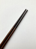 摺り漆のお箸は箸木に漆を何度も摺り込むことでつやを出し、箸先は透き漆を塗っています。
