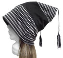 スクエアワッチキャップ◆変りボーダーmix ジャガード織コットンニット/ブラック系 ◇ゆったりサイズ・小顔効果・オールシーズン◇