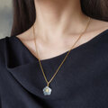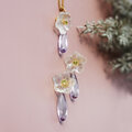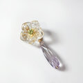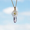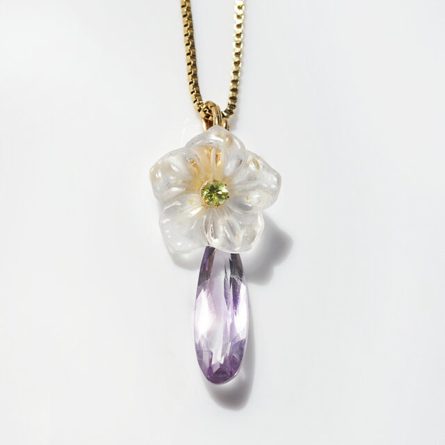 菊の花の形に彫刻された水晶にペリドットとアメジストを合わせて、