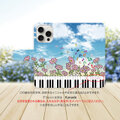 コスモスと音符を手書き風に描いた、なんだかほっこりする「奏シリーズ」のスタンダード手帳型スマホケースです。