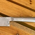ステンレス鋼を使用したオールステンレスの牛刀包丁に、エッチングで薔薇の模様を描きました。