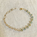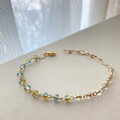 クリアなブルーとブラウンが大人っぽい、小さめチェコガラスとチェーンのブレスレット No.C839