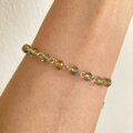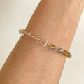 ひとつひとつ色の割合違うクリアなブルーとブラウンのチェコガラスと、透明の芯がゴールドカラーのチェコガラスのブレスレットです。