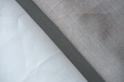 PINTがいつも生地をお願いしている織元経由で、国内の広幅のリネン生地を取扱うことができるようになり、5年ほど前に作り始めることができました。もともとシーツ専用に作られた生地は、生地厚みがほど良く、なめらかな肌触りです。織り密度もしっかりしています。平織生地です。
