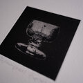サンドペーパーを版にして、銅版画のメゾチントのような柔らかい黒の背景を作りました。