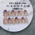肌なじみの良いシマーコーラルに、グリッターパープルとゴールドを重ねて、大人可愛い存在感のあるネイルに仕上げました。