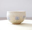 ころんと丸いお湯呑みの形に成形後、アガパンサスをイメージした彫り模様を施しました。