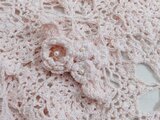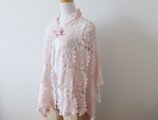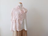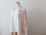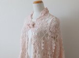 柔らかなパールピンクのシルクの糸をかぎ針で丁寧にモチーフを編み、繋いだストールになります。