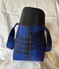 袋口に黒いコットン生地をあしらい、彩り豊かなチェックを