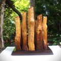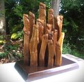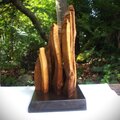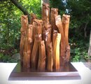 荒々しく割った肌合いの材でフクロウを現わしてみました。