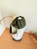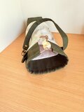 持ち手は片側が取り外せるようにしていますので、バッグなどに取り付けることも可能です。